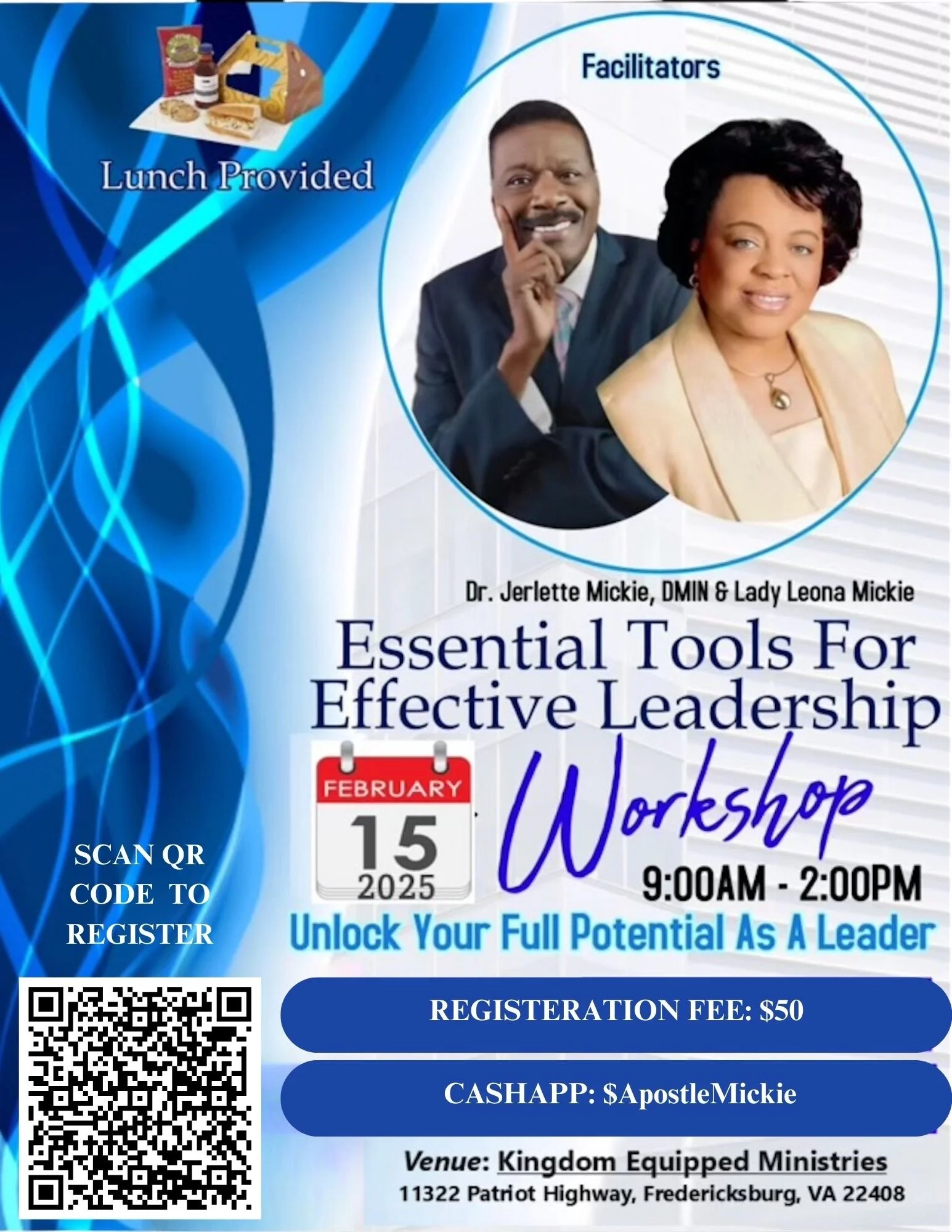 Registration via this GoogleForm -- the fee is $50 and can be sent via CashApp to $ApostleMickie (notate leadership workshop and your name).