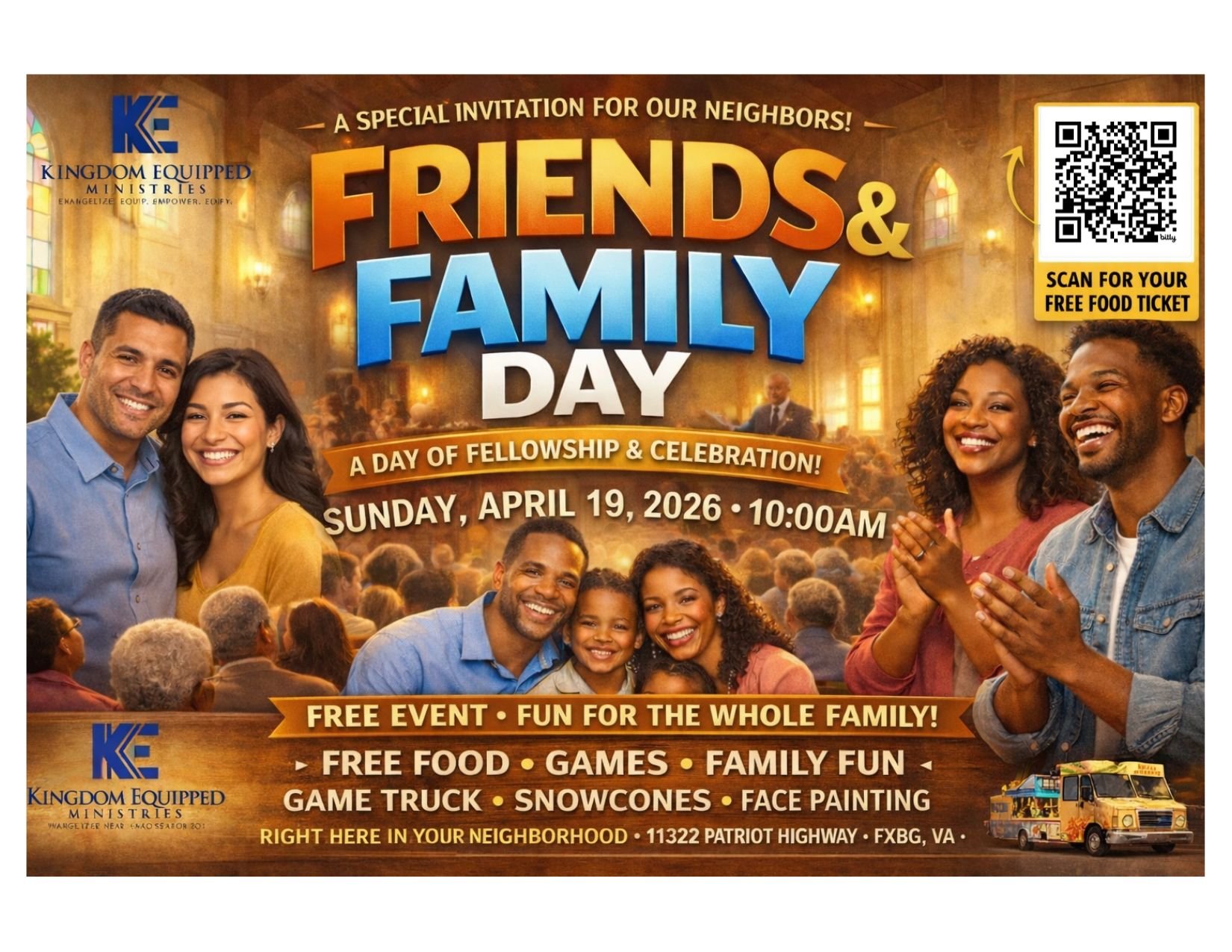 You’re invited to Kingdom Equipped Ministries for Friends & Family Day on Sunday, April 19 at 10:00 AM!
